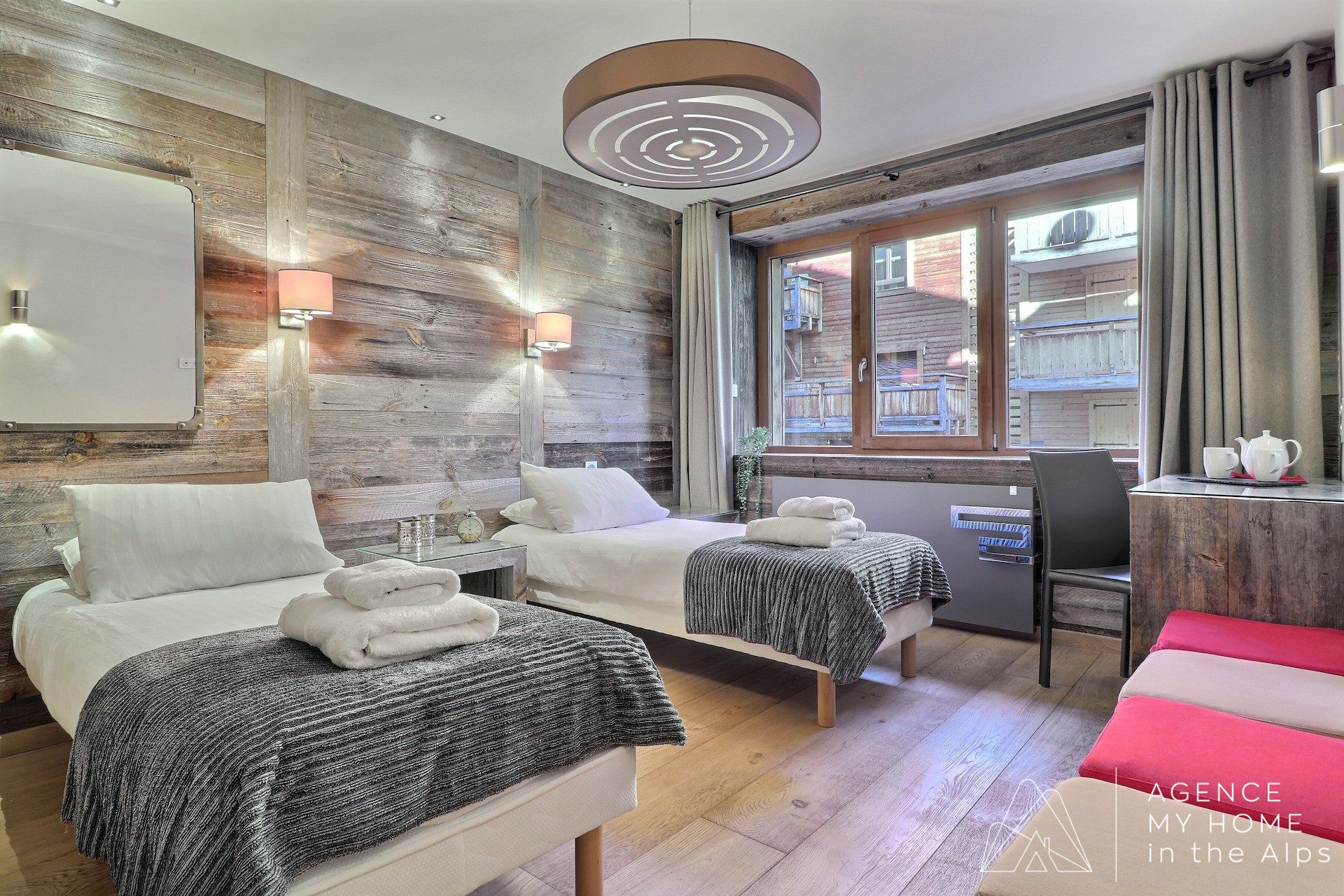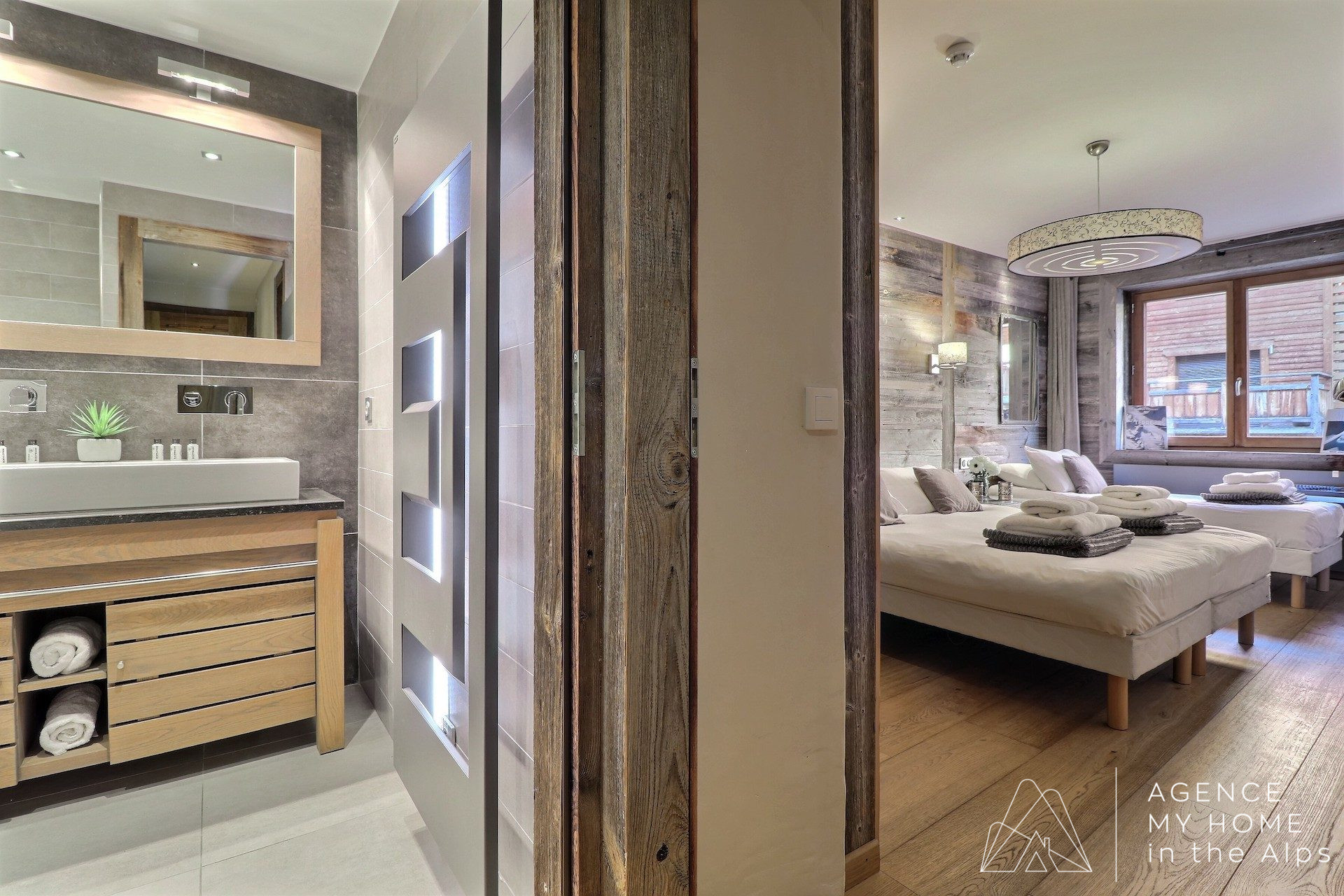 Cet élégant appartement allie à la perfection la chaleur du bois et la modernité pour respecter les codes de la décoration des chalets actuels et vous assurer un grand confort.
