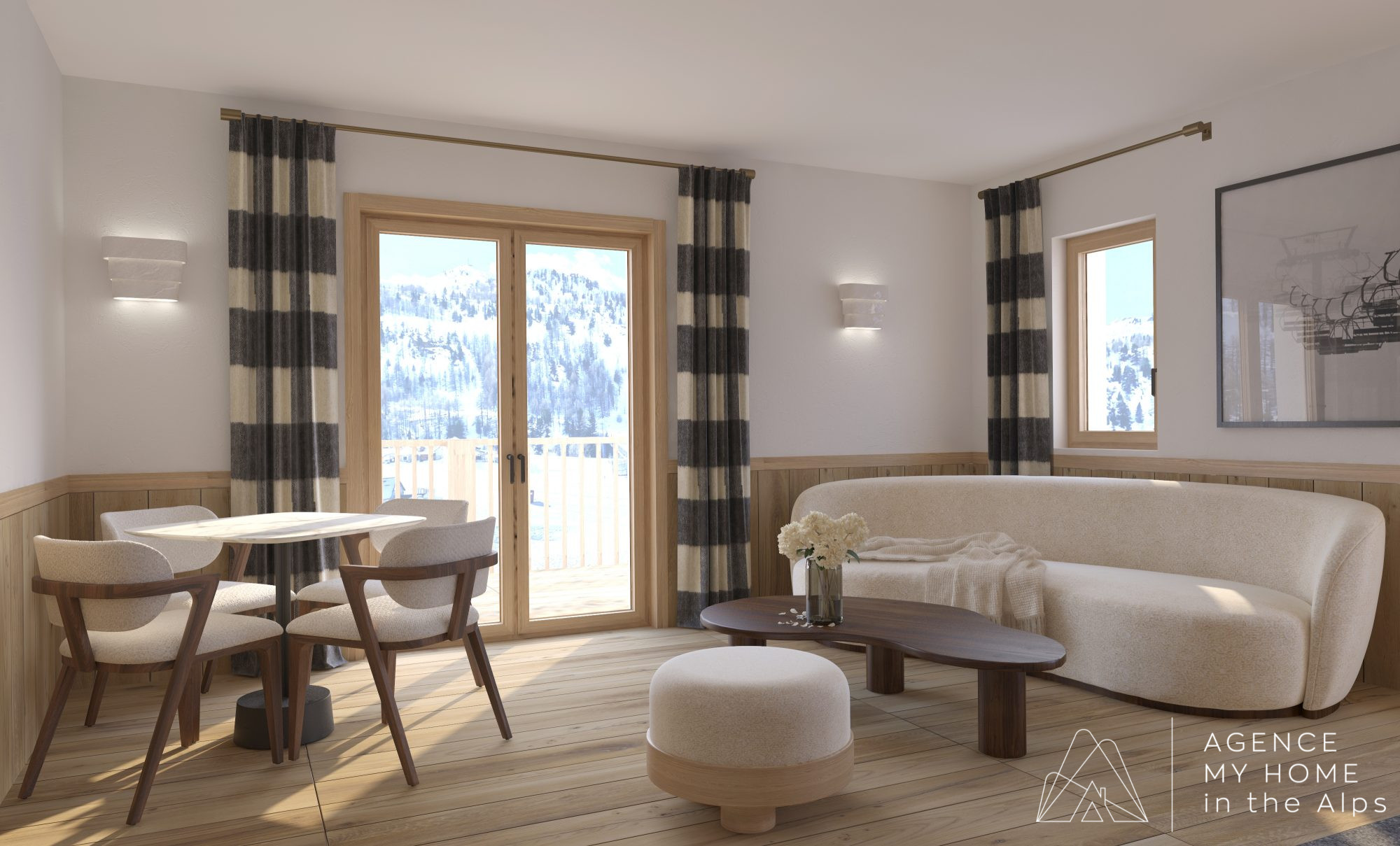 Composé de 2 chambres, d’un coin montagne avec fenêtre, et de 2 salles de bains, ce bien est idéal pour une vie de plain-pied en montagne ou un pied-à-terre facile à vivre toute l’année.