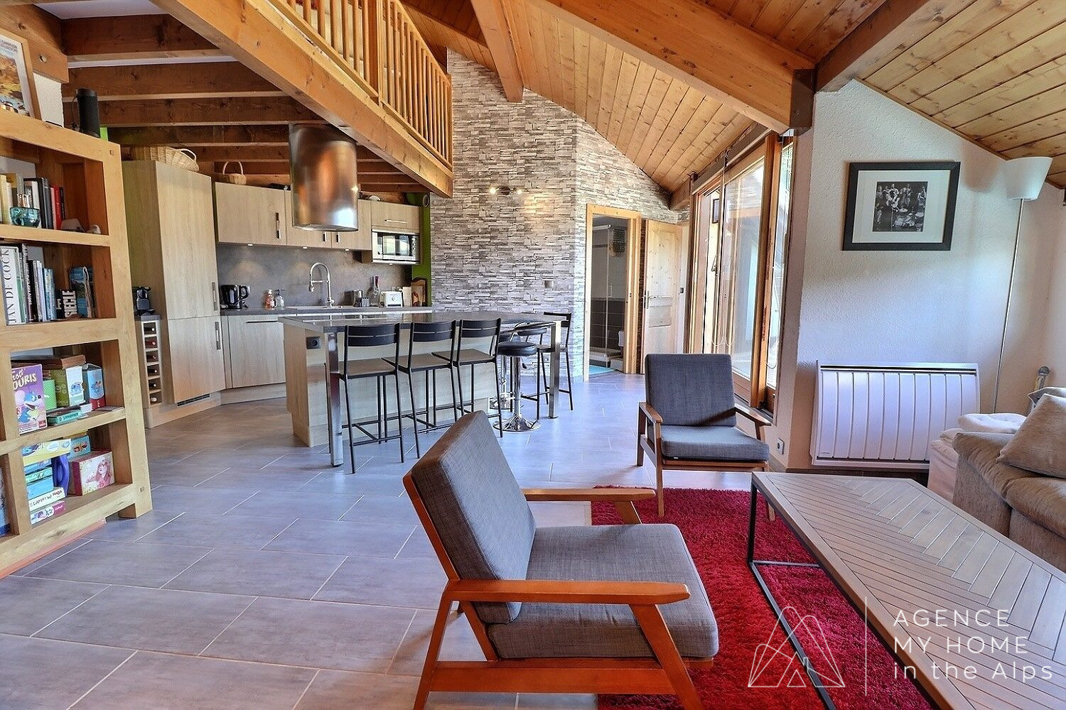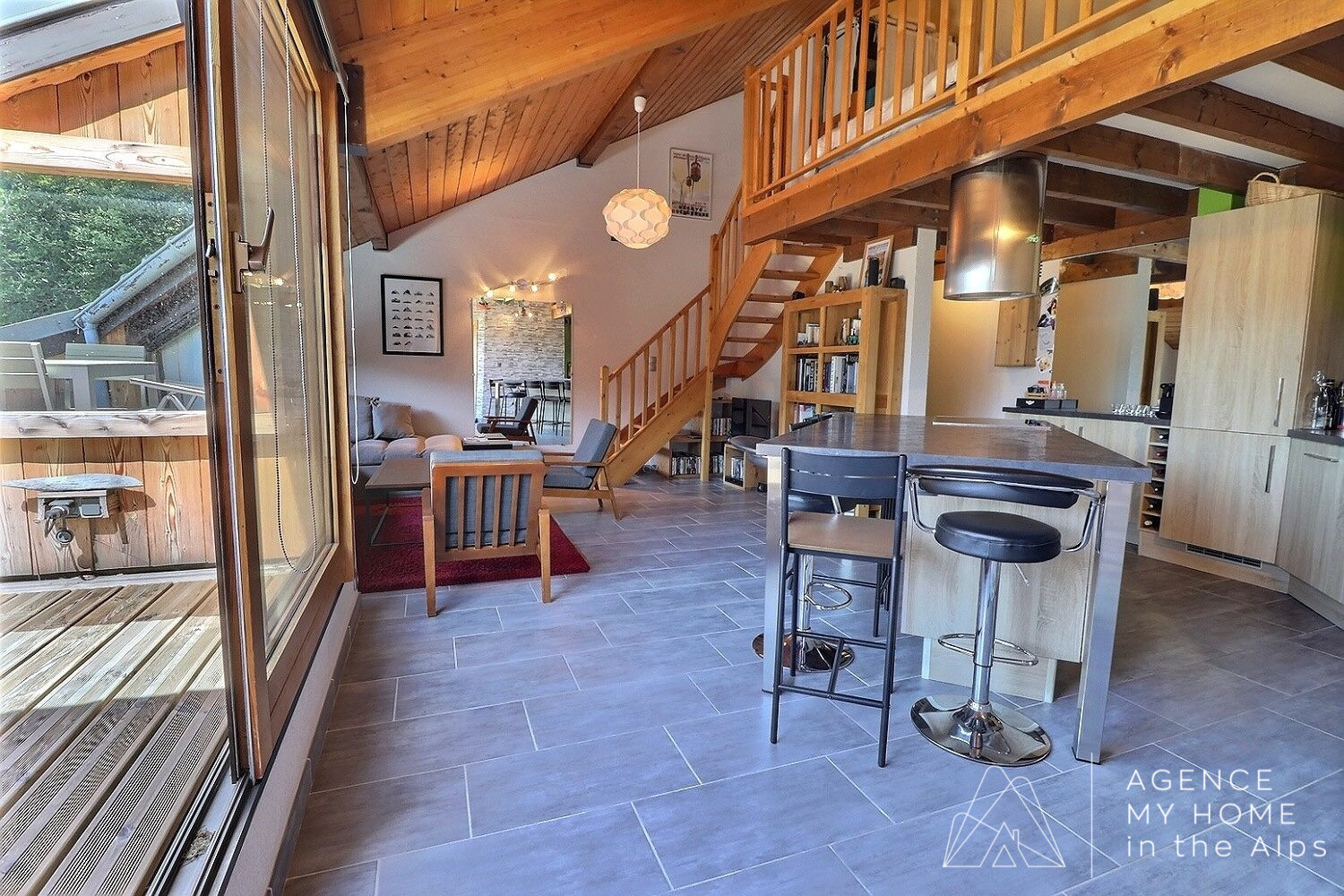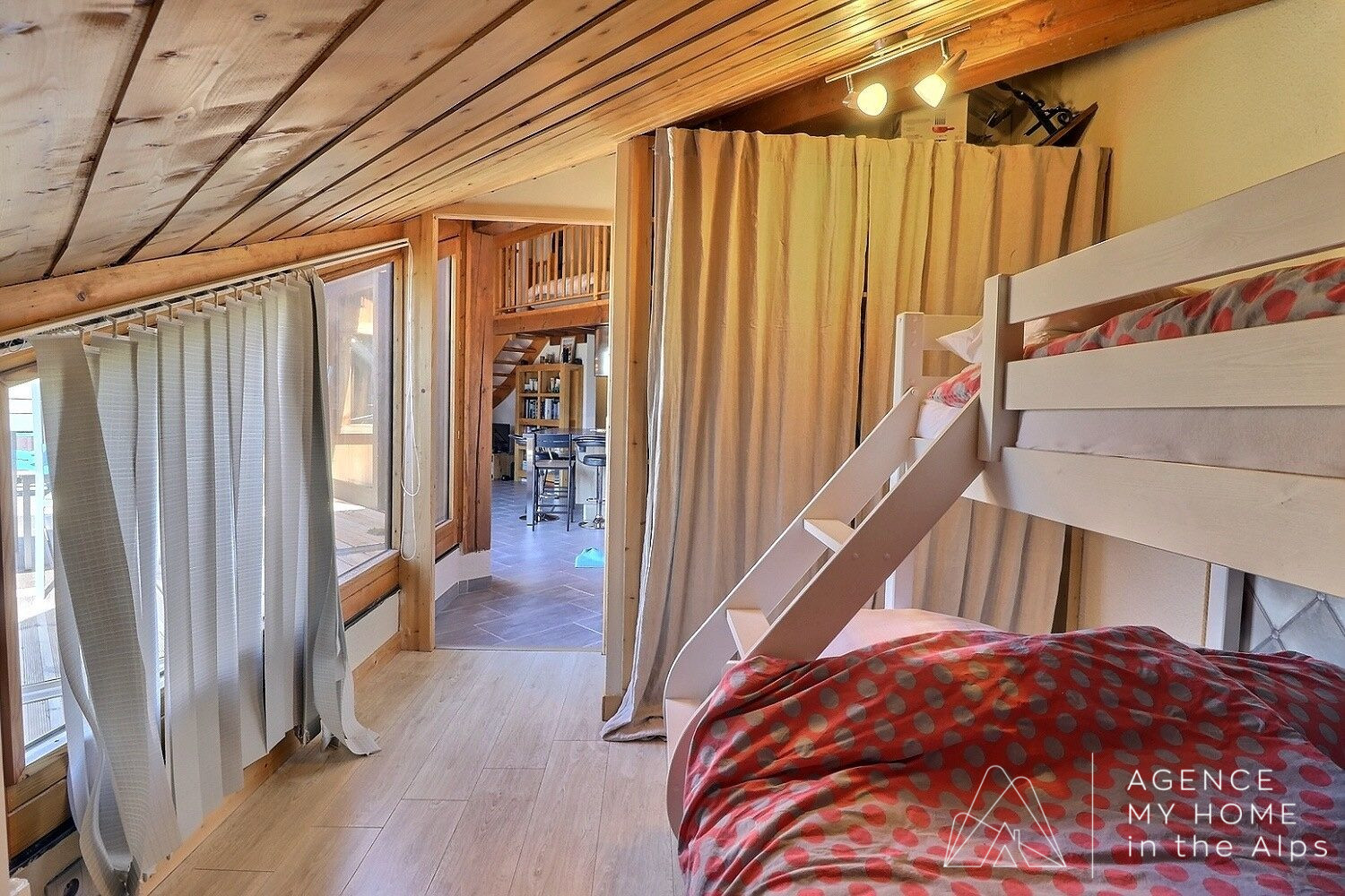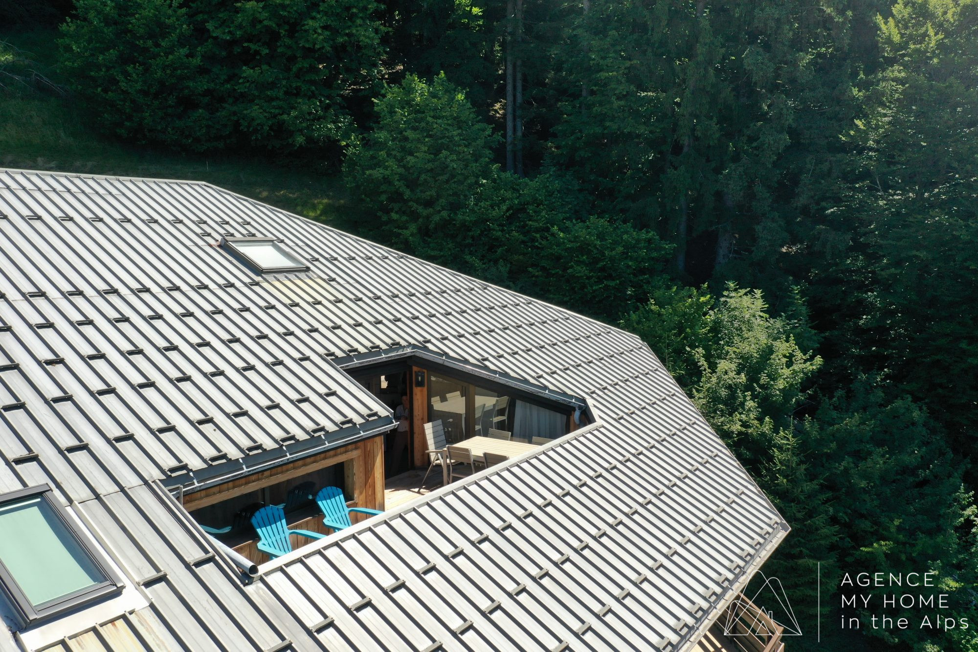 La terrasse est un véritable atout : accessible directement depuis le séjour, elle est très ensoleillée, totalement privée, et offre une vue imprenable sur la forêt environnante. Sans exagérer, c’est l’une des plus belles vues que nous ayons vues depuis un appartement à Morzine.