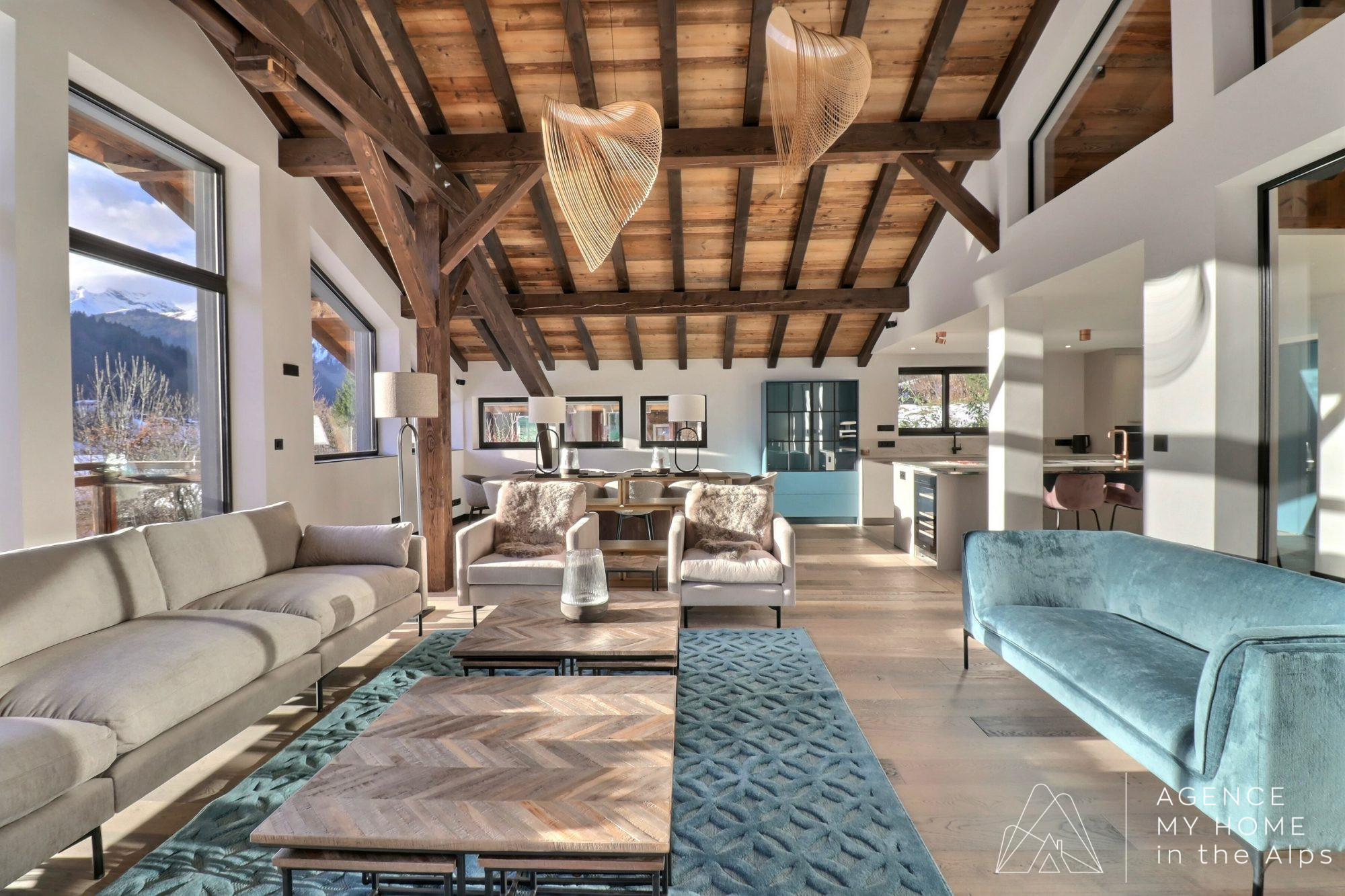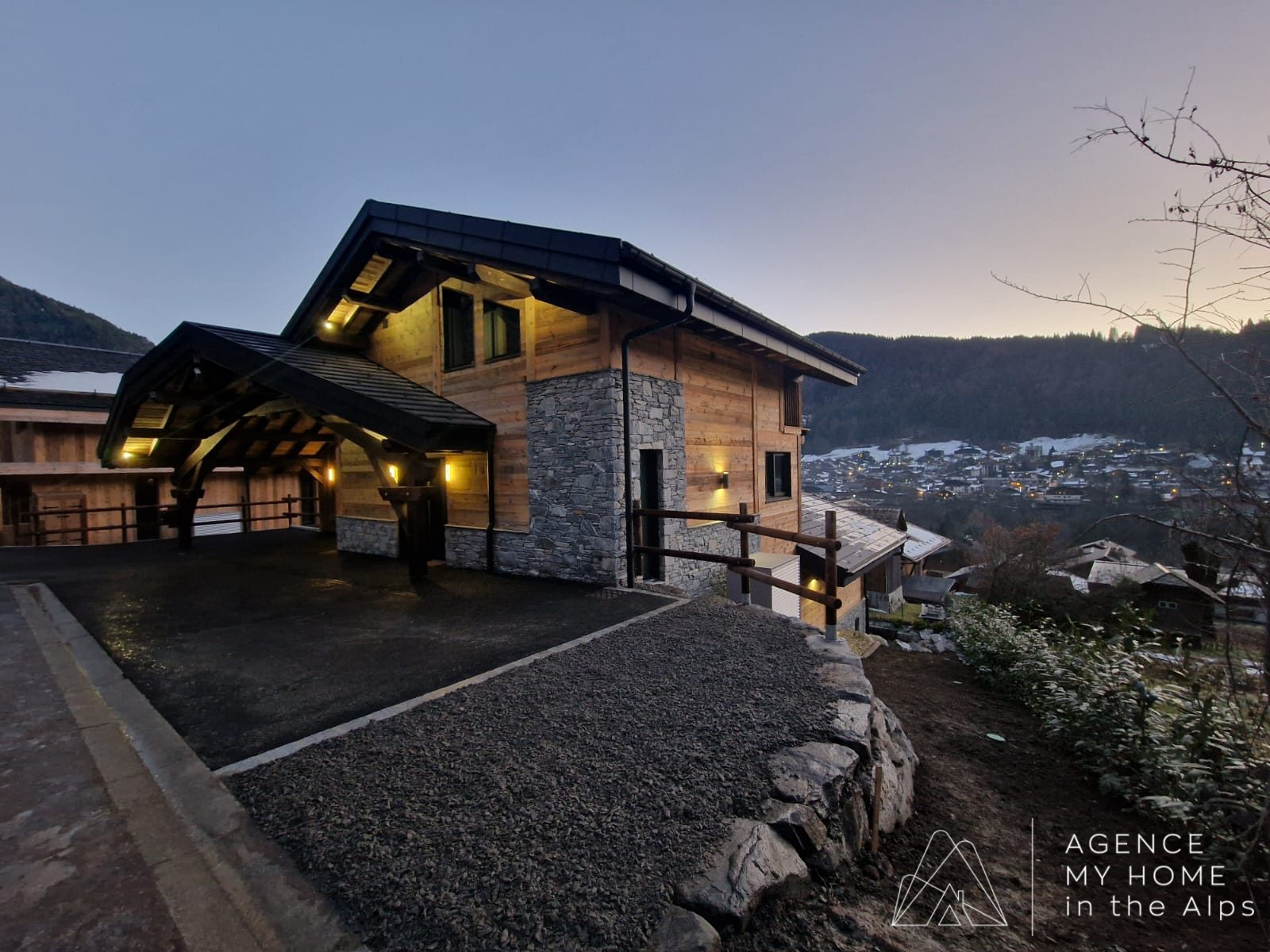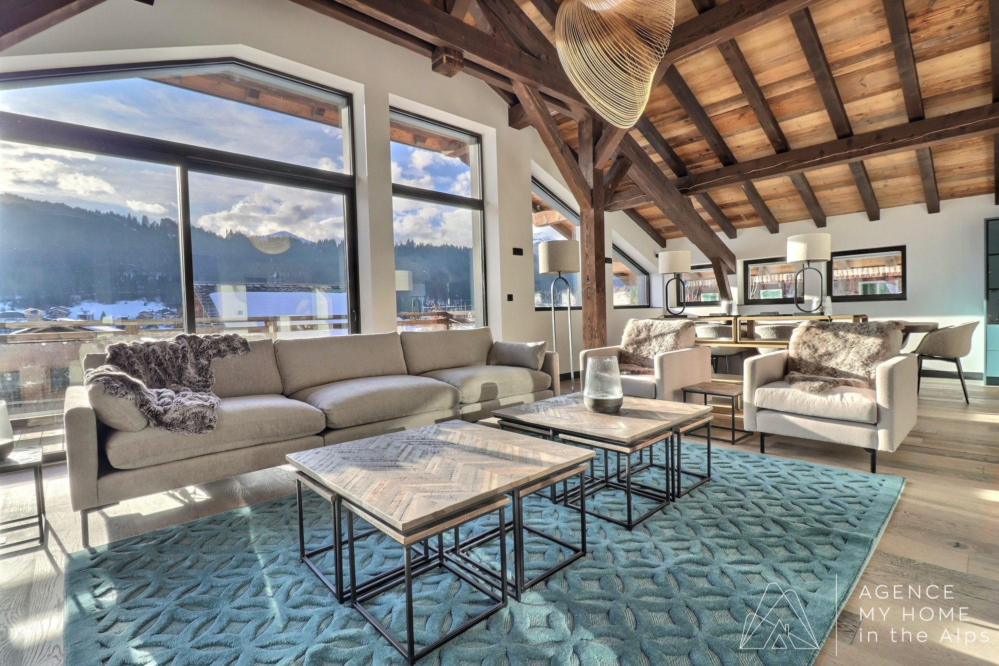 Situé en bout d’impasse, le chalet bénéficie d’un environnement calme et paisible. L’accès extérieur est discret, mais l’intérieur dévoile immédiatement de beaux volumes, des espaces lumineux et des vues spectaculaires. Le chalet dispose de nombreux stationnements extérieurs, de places couvertes ainsi que d’un garage.