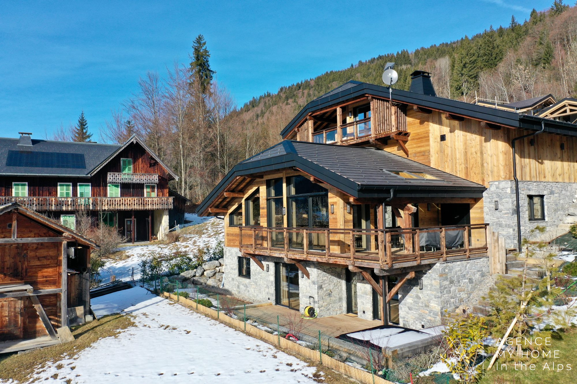 À seulement 10 minutes à pied du centre du village, le chalet bénéficie d’un emplacement ensoleillé, avec une vue panoramique sur les montagnes et une vue privilégiée sur les feux d’artifice du Pleney.