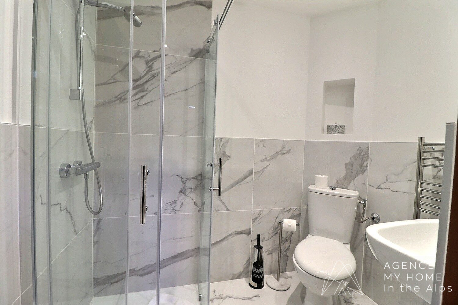 Également accessible depuis l’extérieur, il comprend une entrée avec sèche-chaussures, une cuisine séparée semi-professionnelle donnant sur la terrasse, ainsi qu’un salon et une salle à manger chaleureux ouvrant sur un immense balcon exposé plein sud. Ce niveau dispose également de 2 chambres, d’une salle de bains et d’un WC indépendant.