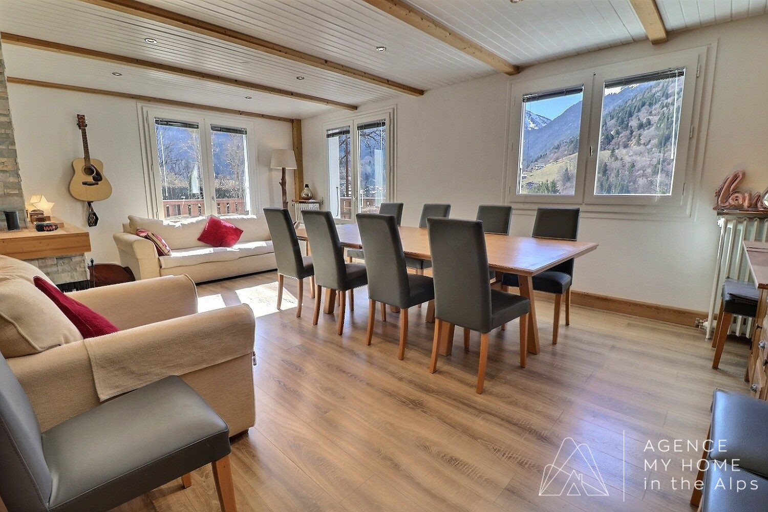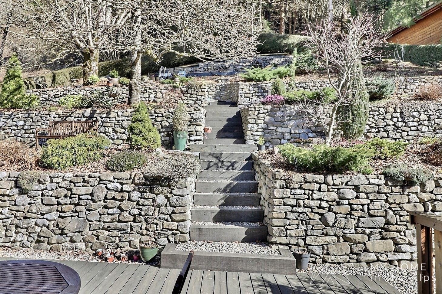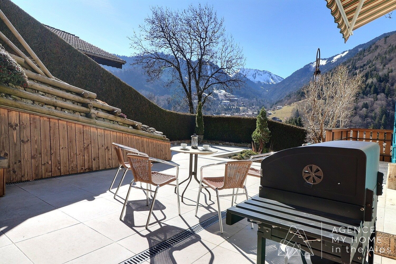 À l’extérieur, le chalet est entouré d’un magnifique jardin en terrasses avec une terrasse ensoleillée orientée sud et sud-ouest, idéalement positionnée pour profiter des vues spectaculaires sur le Roc d’Enfer. Le jardin est joliment paysagé avec une variété de plantes et de fleurs, tout en restant facile à entretenir. À l’arrière de la propriété, un espace permettrait également la construction d’un petit chalet ou d’un studio de jardin, sous réserve d’obtention du permis de construire.