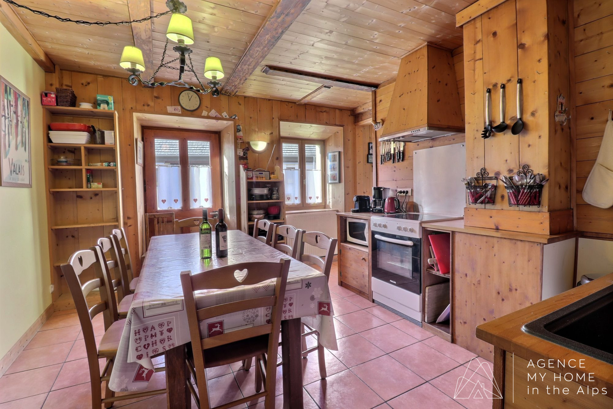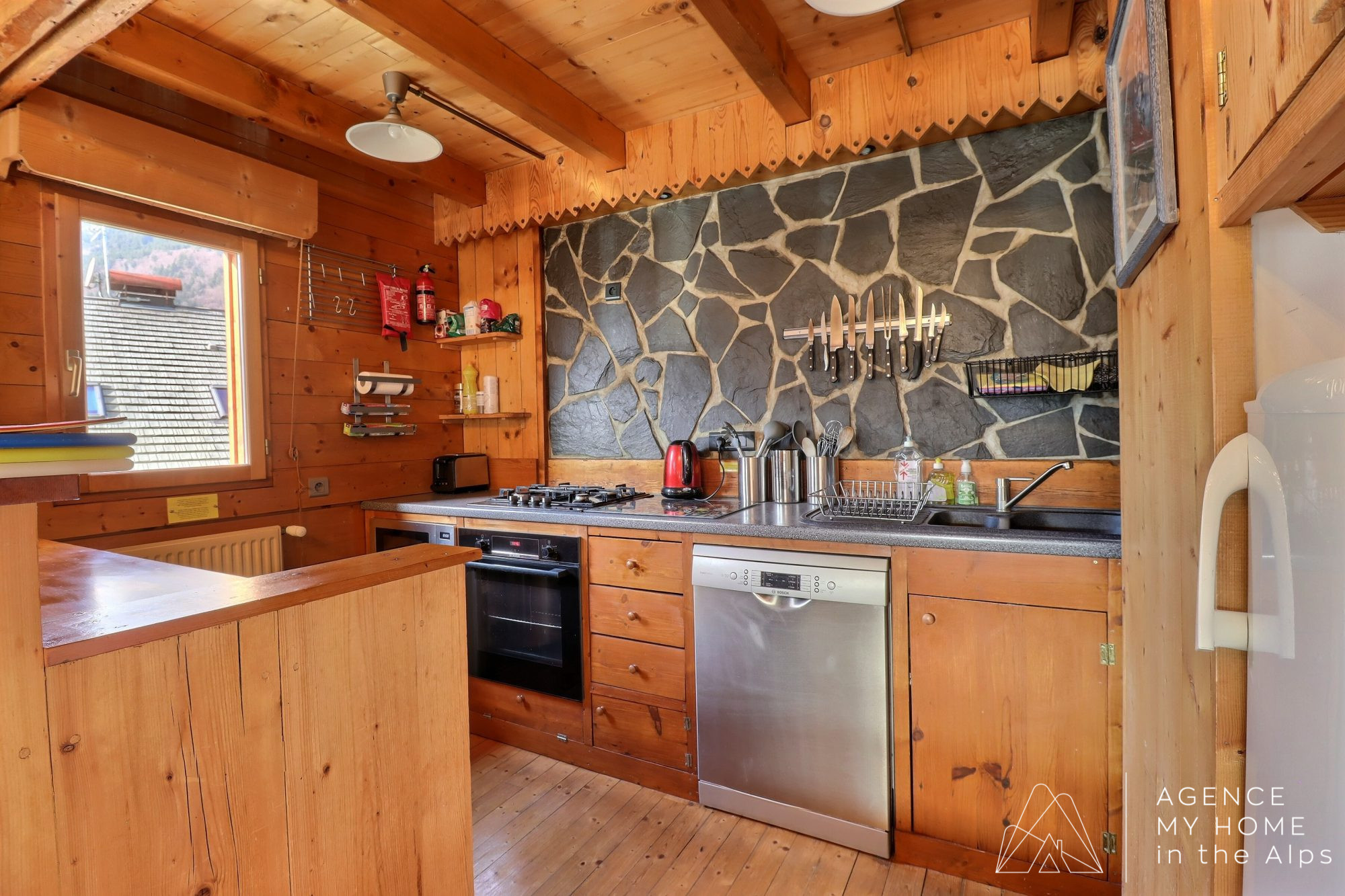 Une cuisine semi-ouverte entièrement équipée, conservant un style savoyard authentique