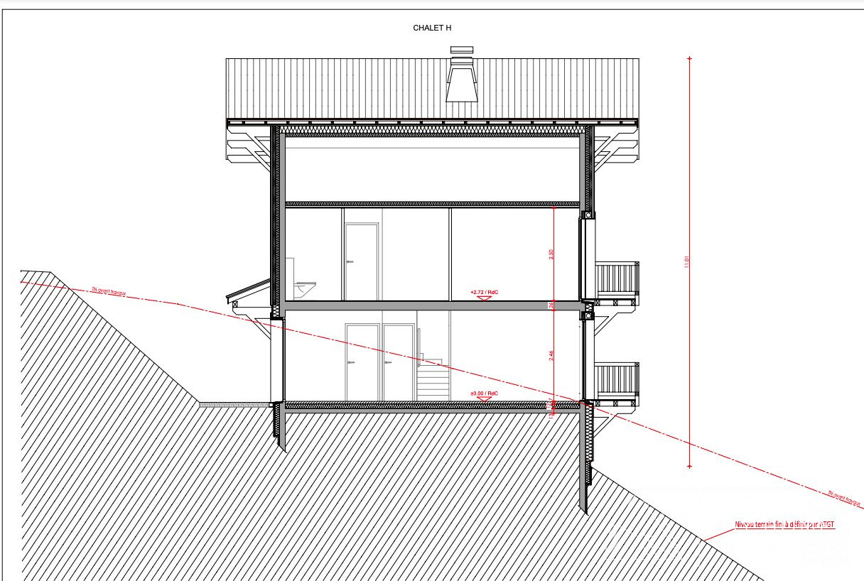 Le chalet H1 sera un charmant chalet mitoyen de 3 chambres avec un petit jardin et 2 terrasses orientées sud pour manger. Sur un total de 88,78 m² habitables avec un salon et une cuisine ouverts et lumineux au rez-de-chaussée de 33,19 m² donnant sur le 1er balcon de 11,94 m². Également au rez-de-chaussée du H1 se trouve une salle de bain avec douche et WC et un garde-manger / buanderie. Il sera possible d’installer un poêle à bois moyennant un supplément. A l’étage au premier étage se trouveront 3 chambres doubles toutes entre 10m² et 11.30m². Dont 2 chambres qui donnent sur le second balcon de 5.47m². Il y a 2 salles de bain prévues pour cet étage avec un w.c séparé.