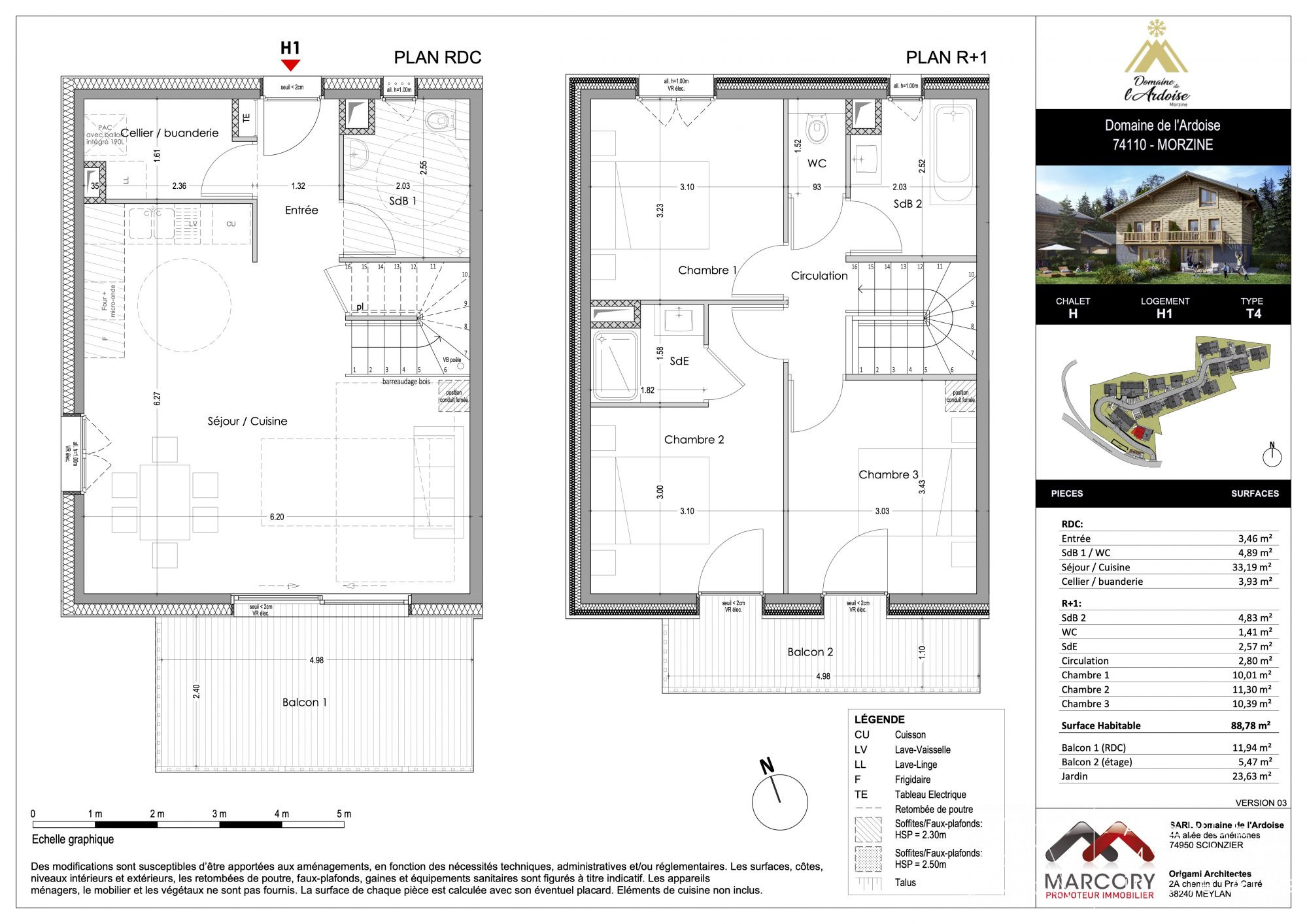 Le chalet H1 sera un charmant chalet mitoyen de 3 chambres avec un petit jardin et 2 terrasses orientées sud pour manger. Sur un total de 88 m² habitables avec un salon et une cuisine ouverts et lumineux au rez-de-chaussée de 33 m² donnant sur le 1er balcon de 11 m². Également au rez-de-chaussée du H1 se trouve une salle de bain avec douche et WC et un garde-manger / buanderie. Il sera possible d’installer un poêle à bois moyennant un supplément.