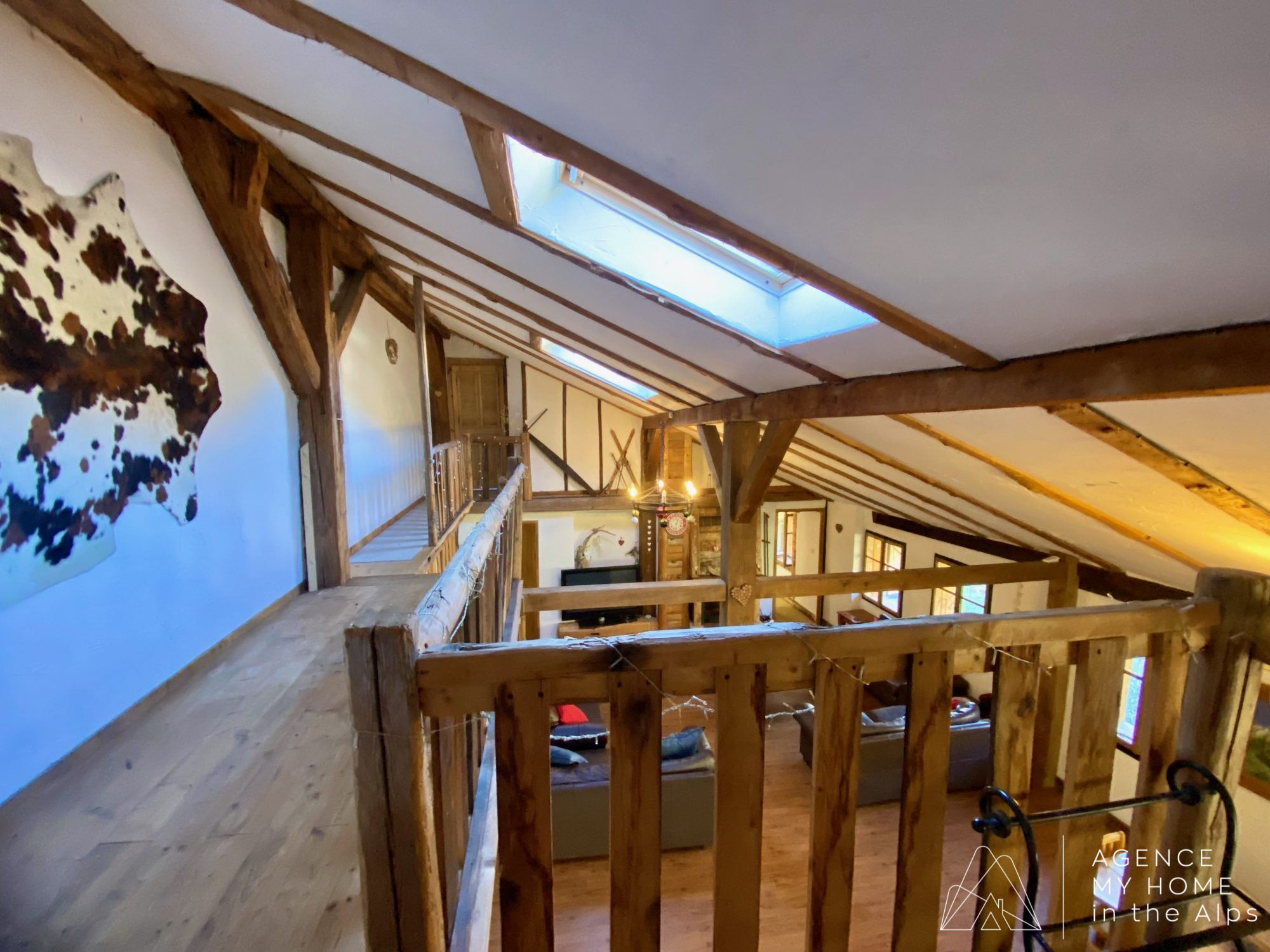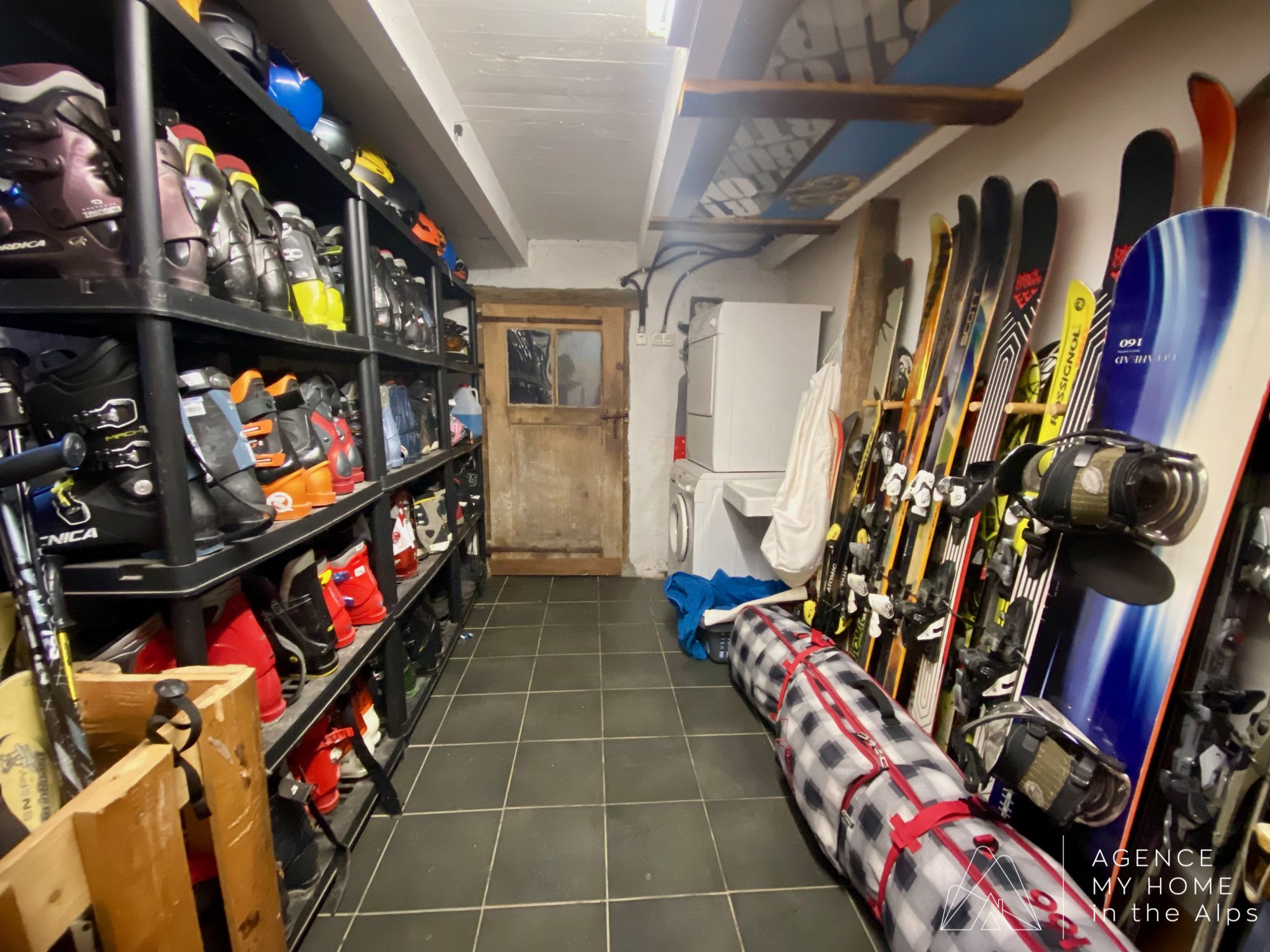 À l’intérieur, vous serez accueilli par une entrée impressionnante avec des pierres apparentes et des détails en bois rustiques. Le rez-de-chaussée comprend deux chambres avec salle de bains, une salle de bains familiale avec sauna, un local à chaussures, une salle de jeux et même une cave à vin cachée sous les escaliers.