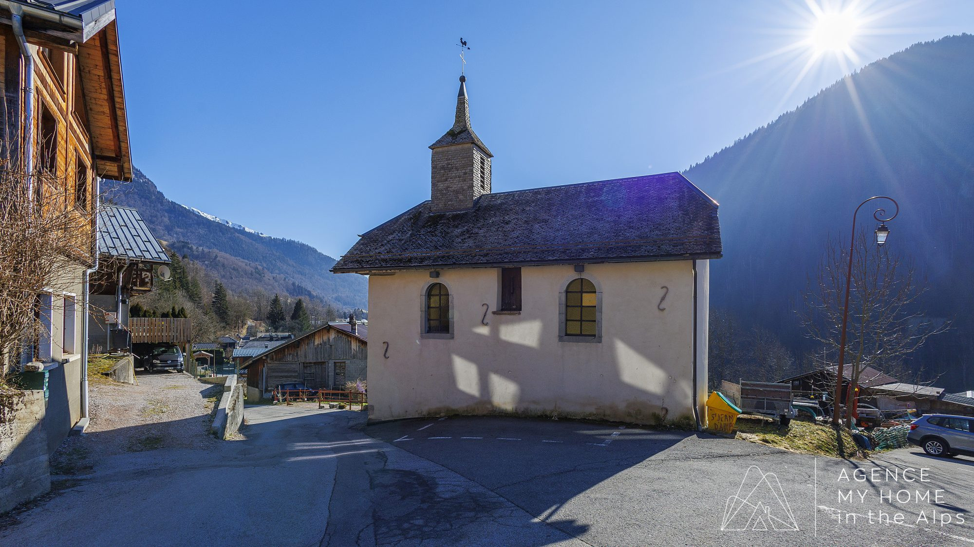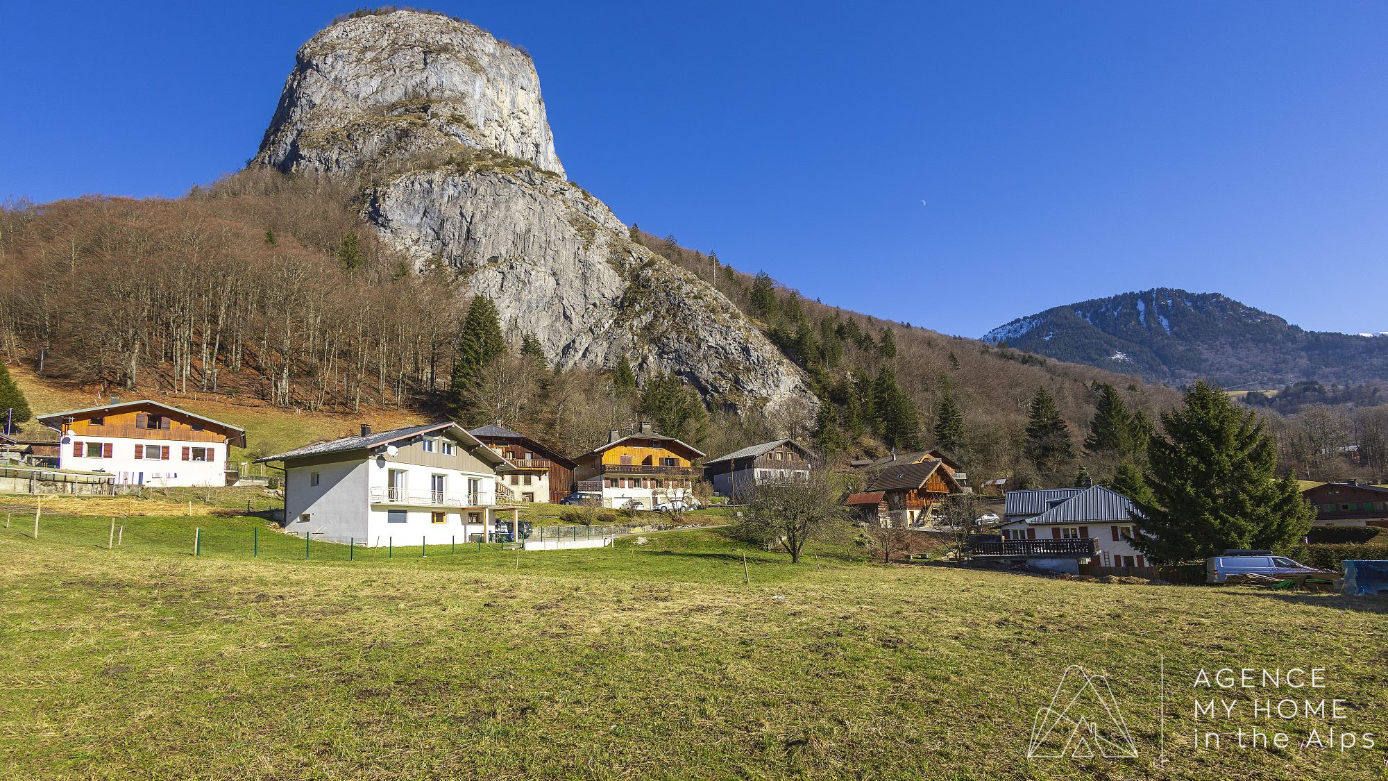 Ce terrain de 738 m2 est situé dans le hameau historique de Bas Thex, à la périphérie du village prospère de St Jean d’Aulps. L’accès se fait depuis la route par un chemin d’accès rural, dans le coin nord-est du terrain.