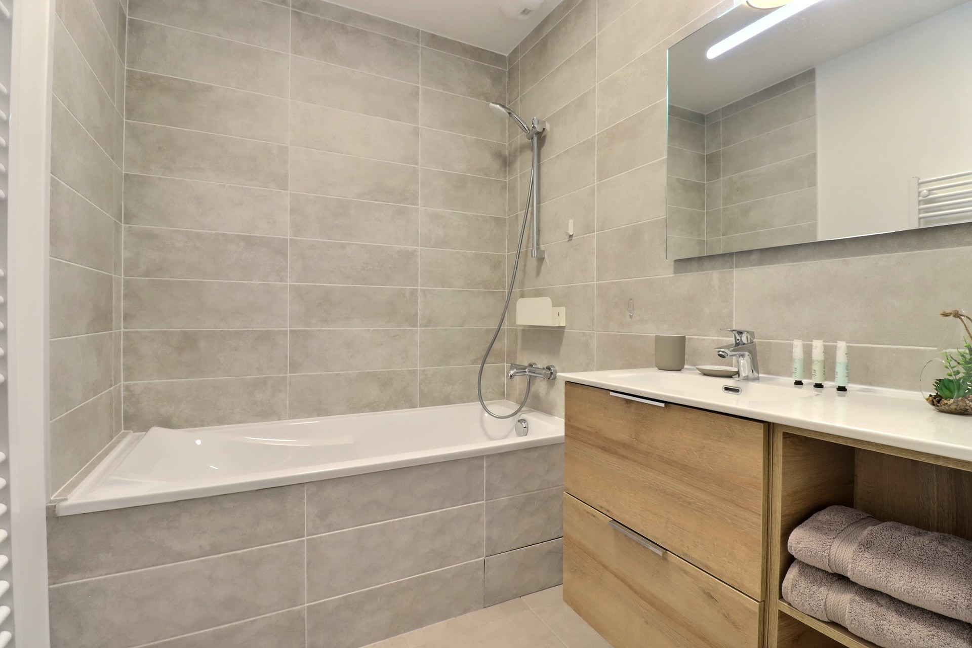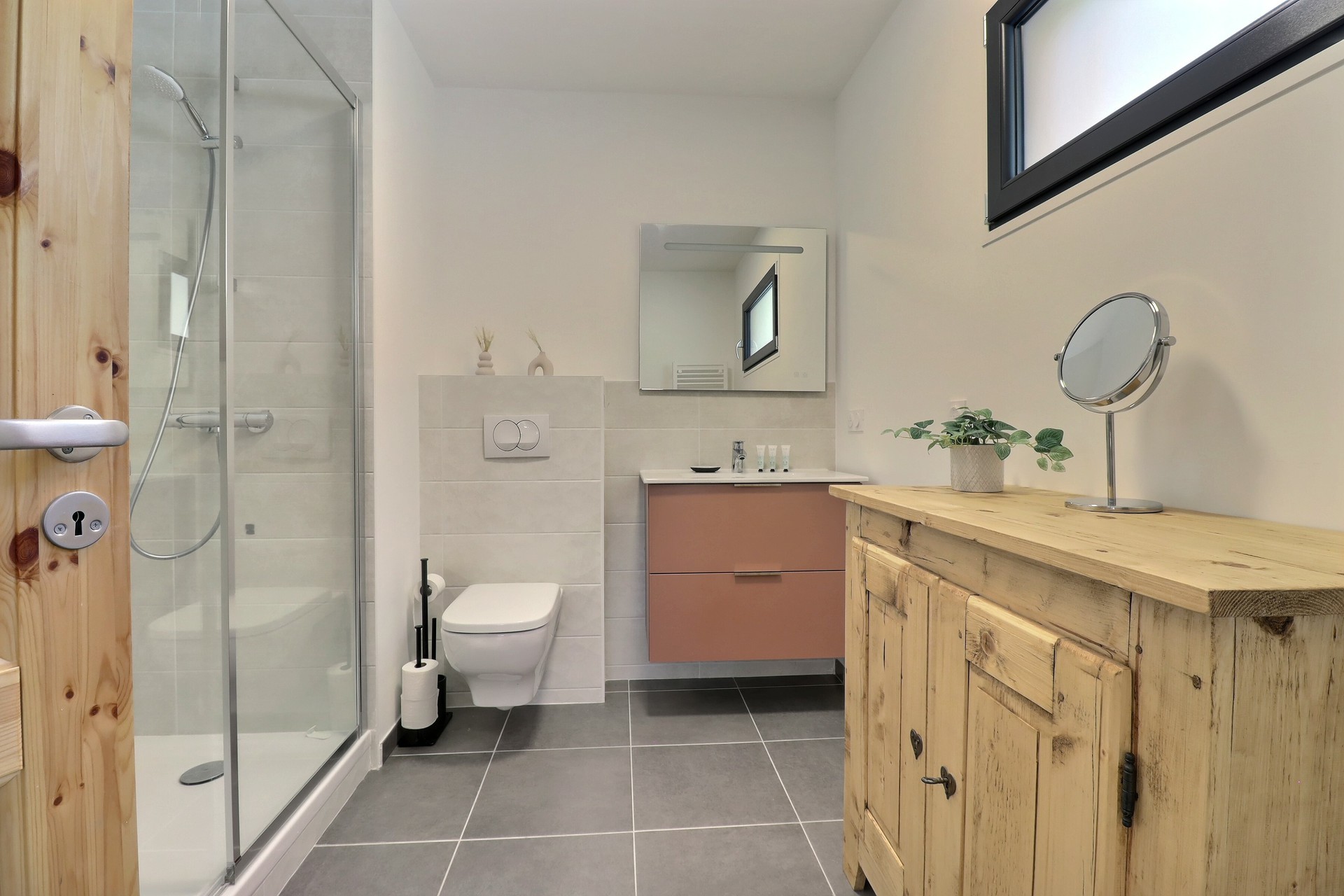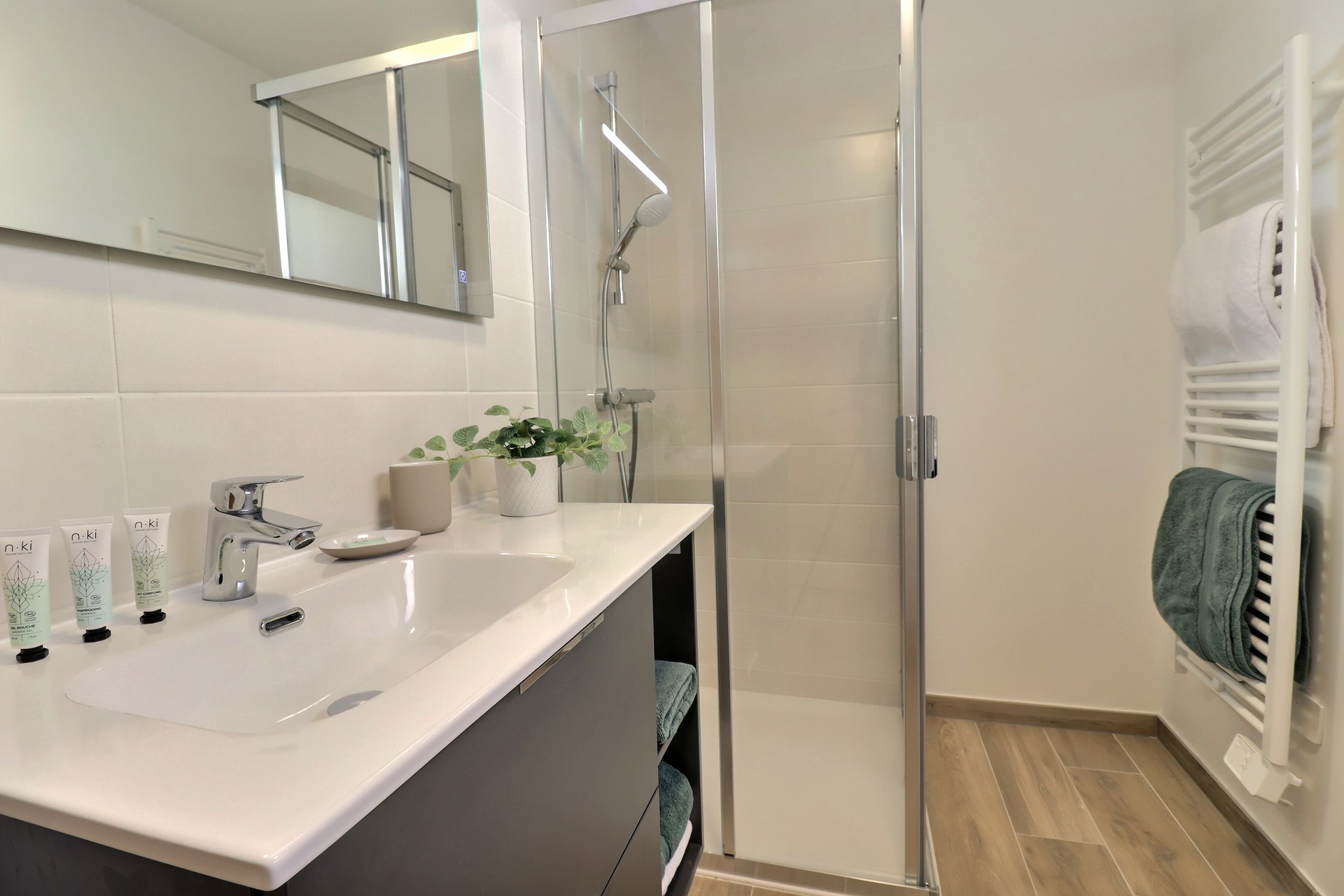 – Salle de bain avec (Douche, lavabo, lave-linge et sèche-linge)